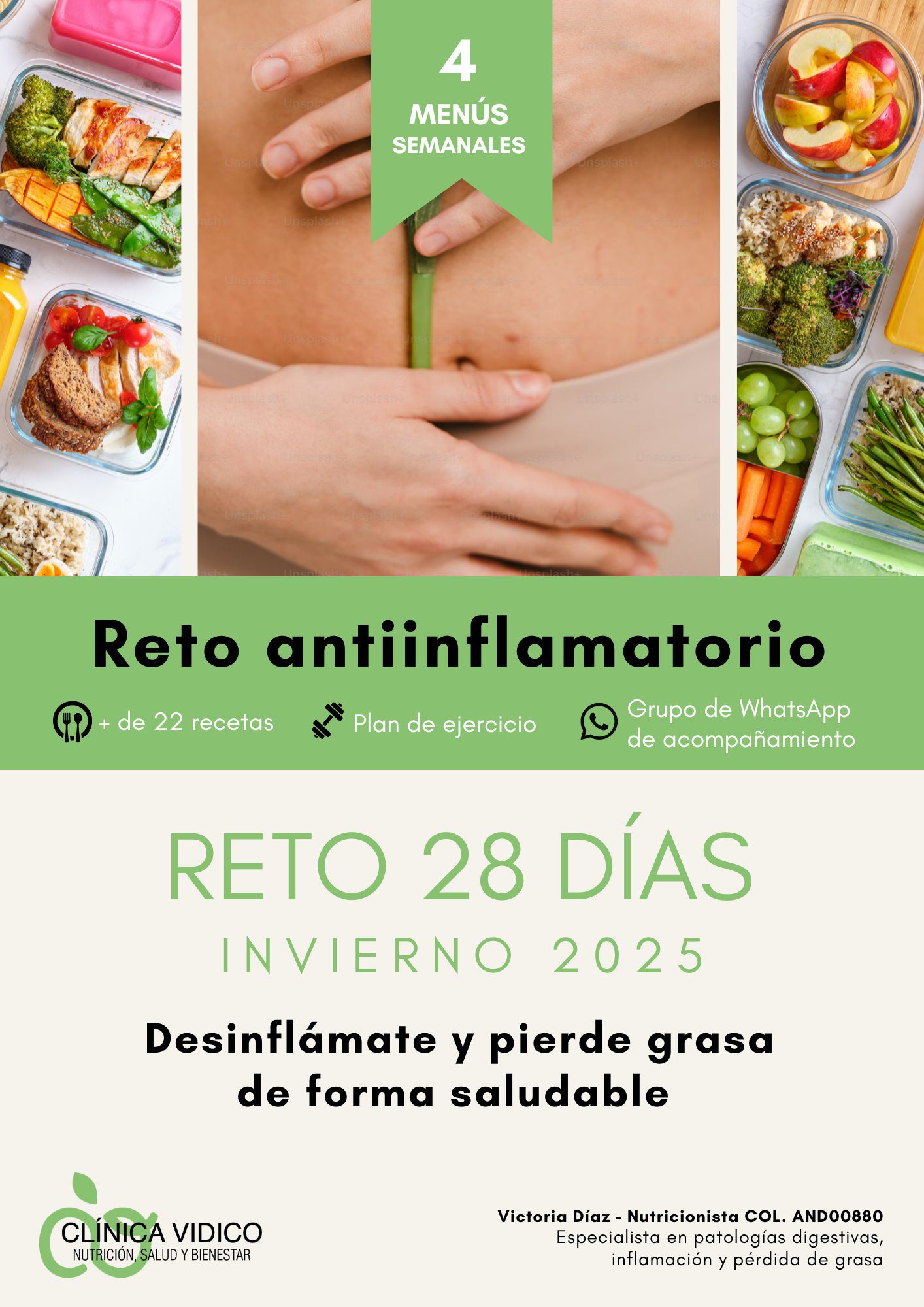 Disfruta de un pack completo de 4 menús antiinflamatorios adaptados a la época de invierno y recetas fáciles y deliciosas que podrás preparar en casa. Incluye desayunos, comidas y cenas pensados para reducir la inflamación, mejorar la digestión y cuidar tu salud sin renunciar al sabor y al disfrute.